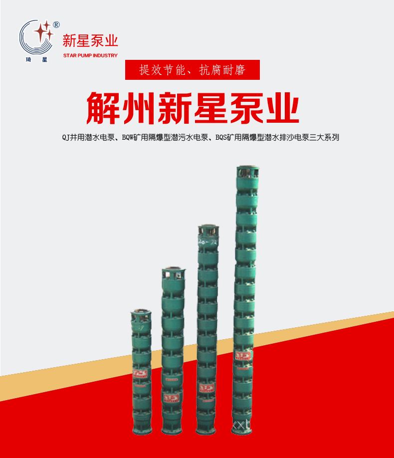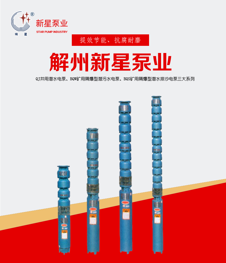 運城市解州新星泵業(yè)有限公司(原名:運城市解州新星潛水電泵廠)始創(chuàng)于1982年(已于2009年11月17日變更為運城市解州新星泵業(yè)有限公司),是經國家質量監(jiān)督檢驗檢疫局頒發(fā)生產許可證的定點現(xiàn)代農機具加工制造企業(yè),是融科研、開發(fā)、設計、制造于一體的潛水電泵生產基地成員之一。 本公司位于三晉之名鎮(zhèn)----解州鎮(zhèn),地理位置優(yōu)越,依山傍水,風景如詩如畫,是古今兵家必爭的咽喉要道,是晉、秦、豫三省交界的交通樞紐,人杰地靈,文化底蘊深厚,系古三國名圣關羽/公出生地。歷代名人柳宗元、現(xiàn)代畫家丁紹光均生長在這里。